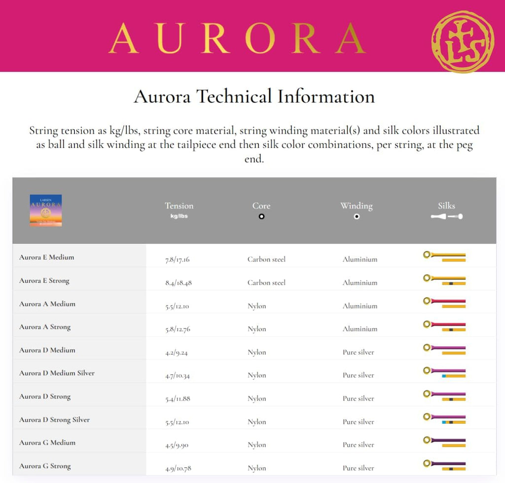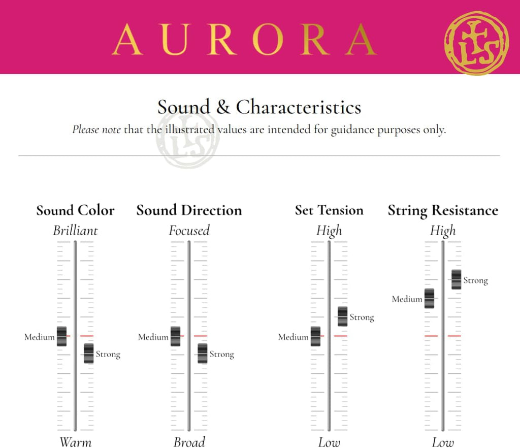 - Brilliant and Bold – The Aurora Strong Silver set enhances volume and clarity with added resistance under the bow, suitable for expressive soloists and powerful ensemble playing.