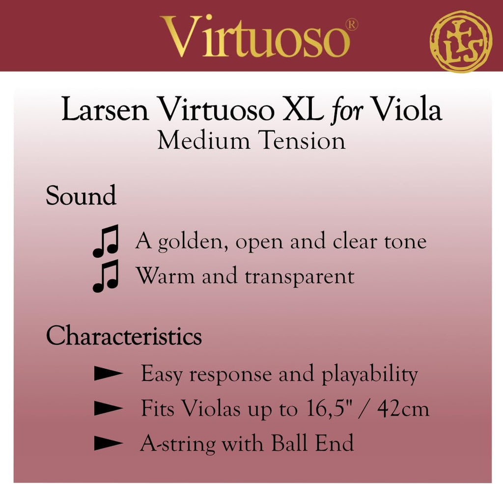 - Complete Professional Viola String Set (4/4 Size) – Includes the trusted Original A string and Virtuoso D, G and C strings in longer size.